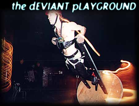 The playground was a benefit for the New York Body Archive, Sandbox Magazine, and the CSV Cultural Center. The images were a presentation for Charles Gatewood, photographer/videographer of the fetish/sm/body art scene. He is producing a book that will include photographs from the show. The Second Playground. Quotes about the First Playground. |